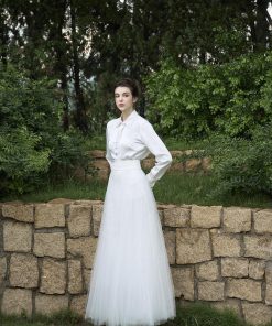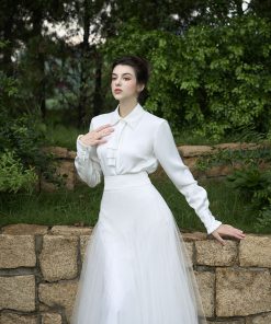 – Sử dụng lưới Ý là chất liệu chính của chân váy,thiết kế can ,chắp,bổ tạo múi bồng xòe cực kỳ tỉ mỉ và khác biệt tạo nên sự hài hòa thướt tha vô cùng đồng điệu khi mix cùng vest và sơ mi.Đính đá trang trí