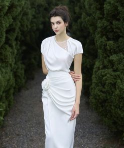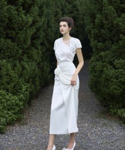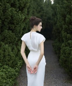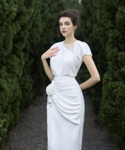 – Sử dụng lụa bóng Nhật làm chất liệu chủ đạo. Thiết kế xếp nhún tạo ly đổ tự nhiên mang phong cách cổ điển sang trọng.
