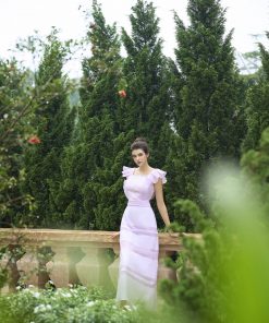– Phom đầm chữ A xòe nhẹ,sử dụng kiểu tay bèo cánh tiên.
