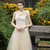 – Chân váy sử dụng kỹ thuật can lưới tạo múi độc đáo, cầu kỳ tạo nên độ bồng thướt tha sang trọng thuyệt đối. Chi tiết phối lưới xếp chéo vai kết hợp tà rơi phía sau tôn lên sự mềm mại trong trẻo của Oscar Dress